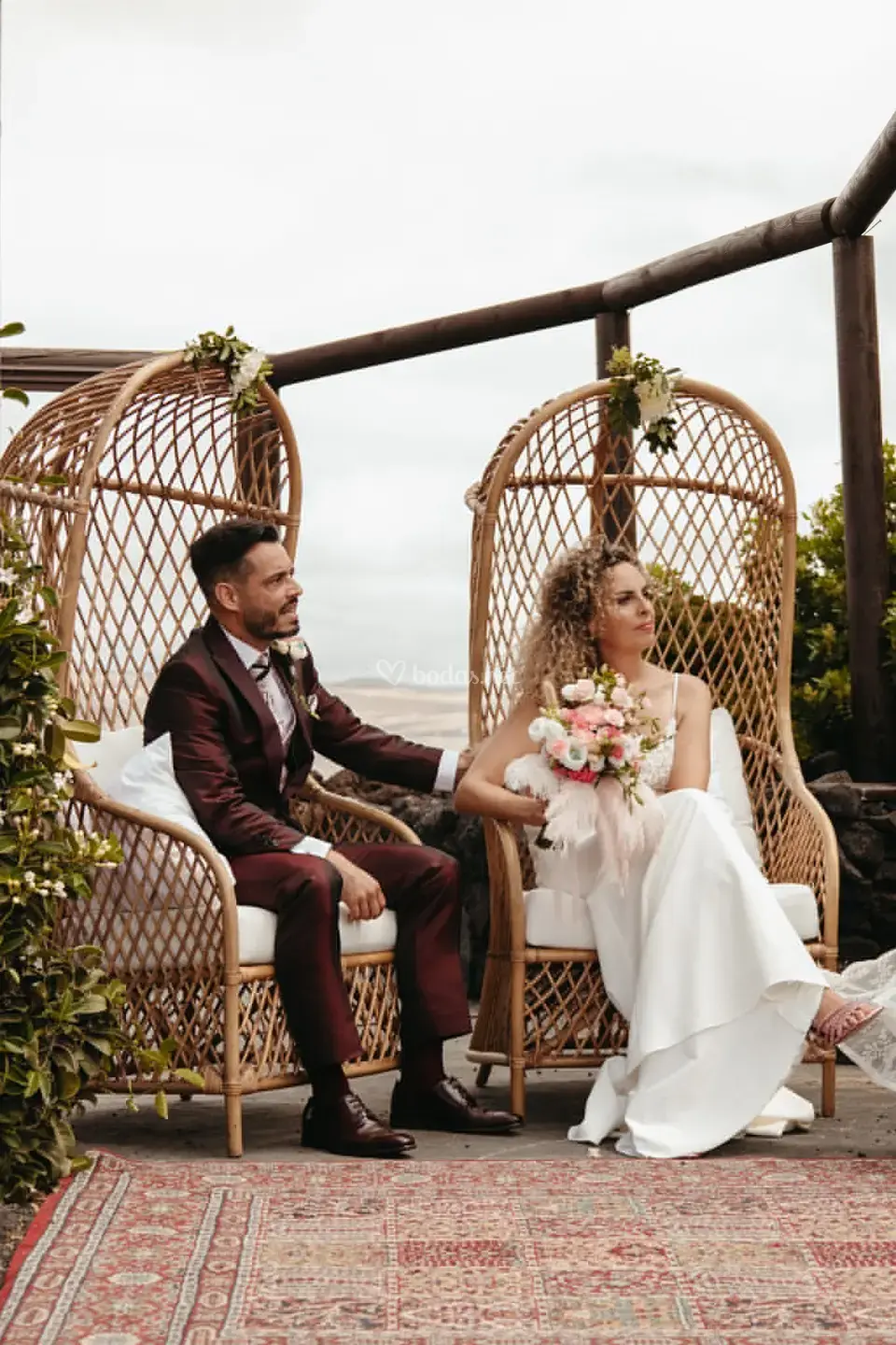 El estilo rústico es perfecto para aquellos que anhelan una boda más íntima y cercana a la naturaleza. Fincas tradicionales y espacios que resalten la cultura lanzaroteña ofrecen el entorno adecuado. Elementos como madera, encuadernaciones de yute, y adornos que evitan lo extravagante, crean una atmósfera acogedora. La ambientación puede incluir elementos típicos de la zona, incorporando tradiciones locales en la celebración.