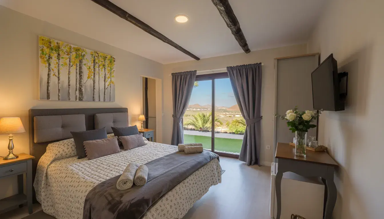 Esta habitación, llena de luz cálida, tiene unas vistas inmejorables del horizonte. Cuando el sol comienza a ponerse, el cielo se tiñe de tonos dorados y anaranjados, creando una atmósfera única de paz y belleza. La comodidad de su cama te invitará a disfrutar de una estancia llena de tranquilidad.
